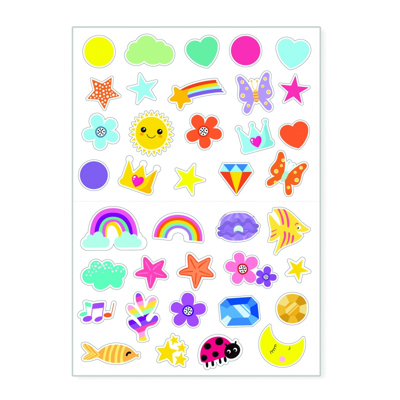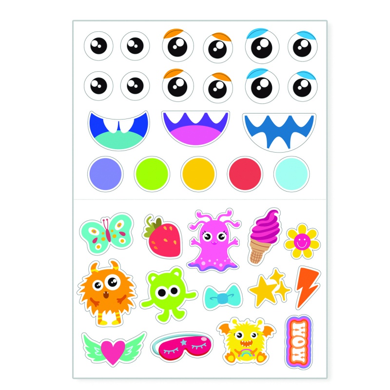 - zestaw do kolorowania: mazaki 6szt, kolorowanka samoprzylepna 10x85cm, naklejki 38szt, puzzle 3szt, pieczątki 2szt