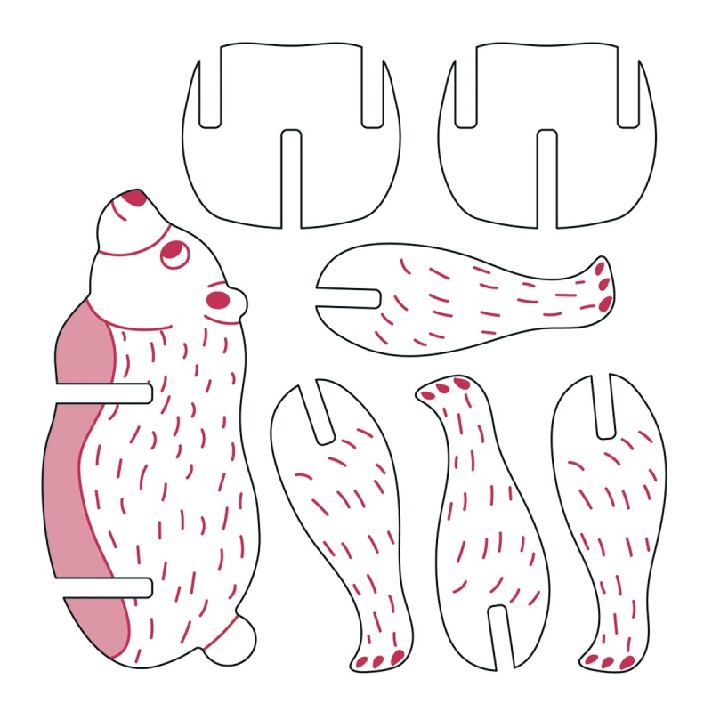 - zestaw 3D:14 części, naklejki 38szt, puzzle 3szt, kredki woskowe 6szt, pieczątki 2szt