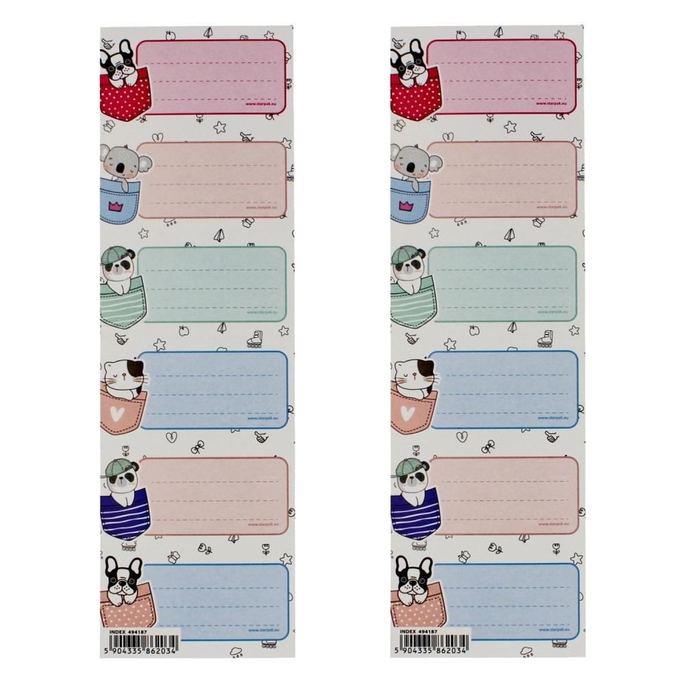 Naklejki dostępne w kilku wzorach figurki Minisy, na listku znajduje się 6 naklejek, naklejki pozwalają na opisanie zeszytów szkolnych, dzięki czemu unikniemy pomyłek przy pakowaniu tornistra do szkoły.