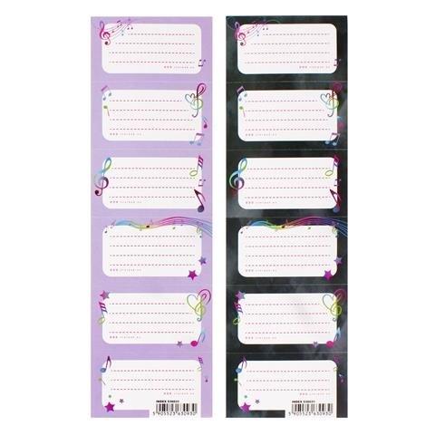 Naklejki na zeszyt Music, dostępne w sześciu wzorach, na listku znajduje się 6 naklejek, naklejki pozwalają na opisanie zeszytów szkolnych, dzięki czemu unikniemy pomyłek przy pakowaniu tornistra do szkoły.