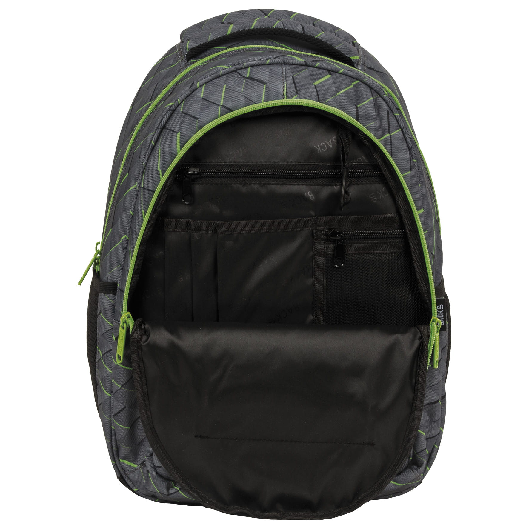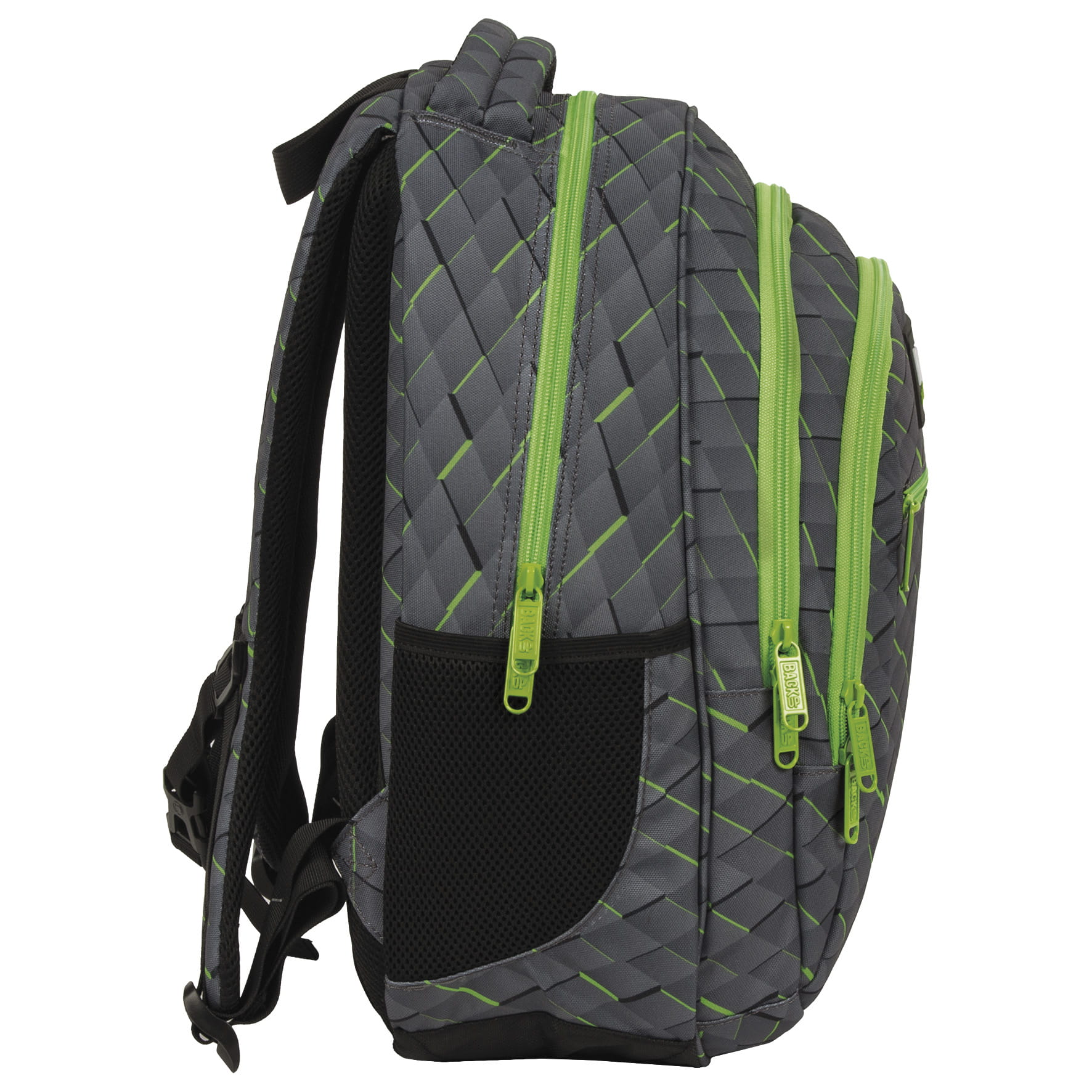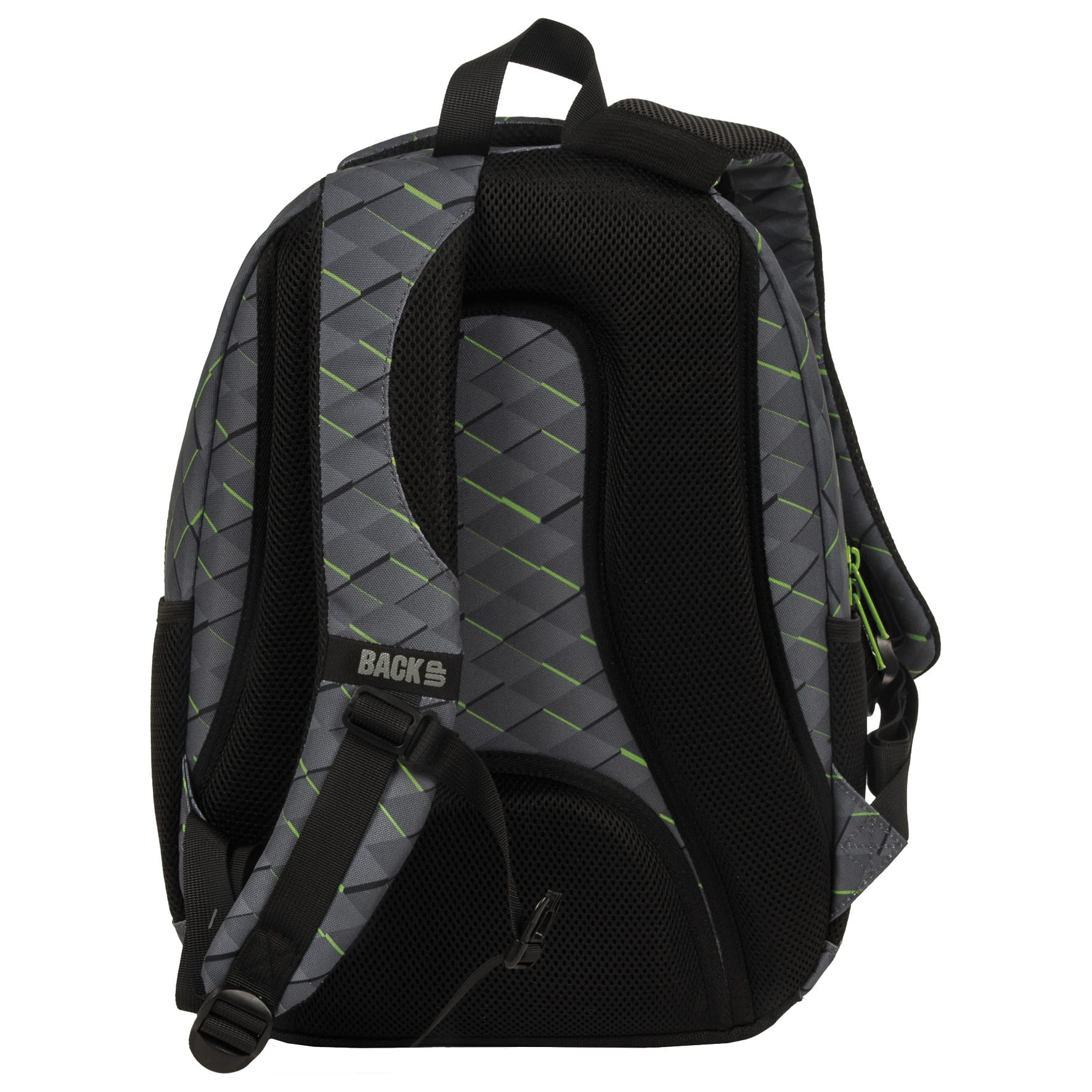 Szare, pikselowe kwadraciki przełamane intensywną, neonową zielenią detali i zamków. To wyjątkowe połączenie minimalizmu z nutą fantazji kolorystycznej, które tworzy jedyny w swoim rodzaju wzór. Nietuzinkowy plecak dla chłopca, przenosi do cyfrowego, komputerowego świata, pełnego możliwości. Plecak BackUP posiada: