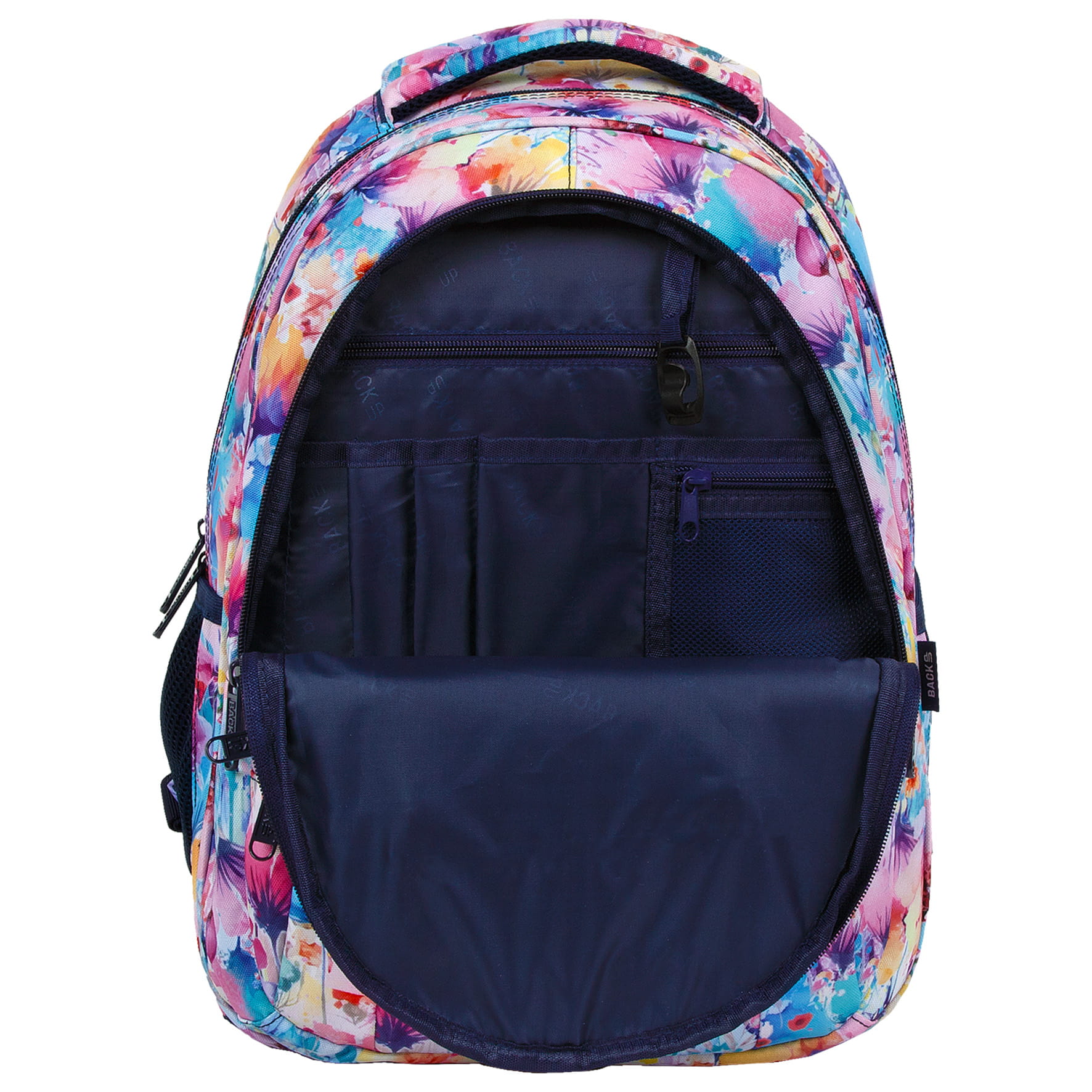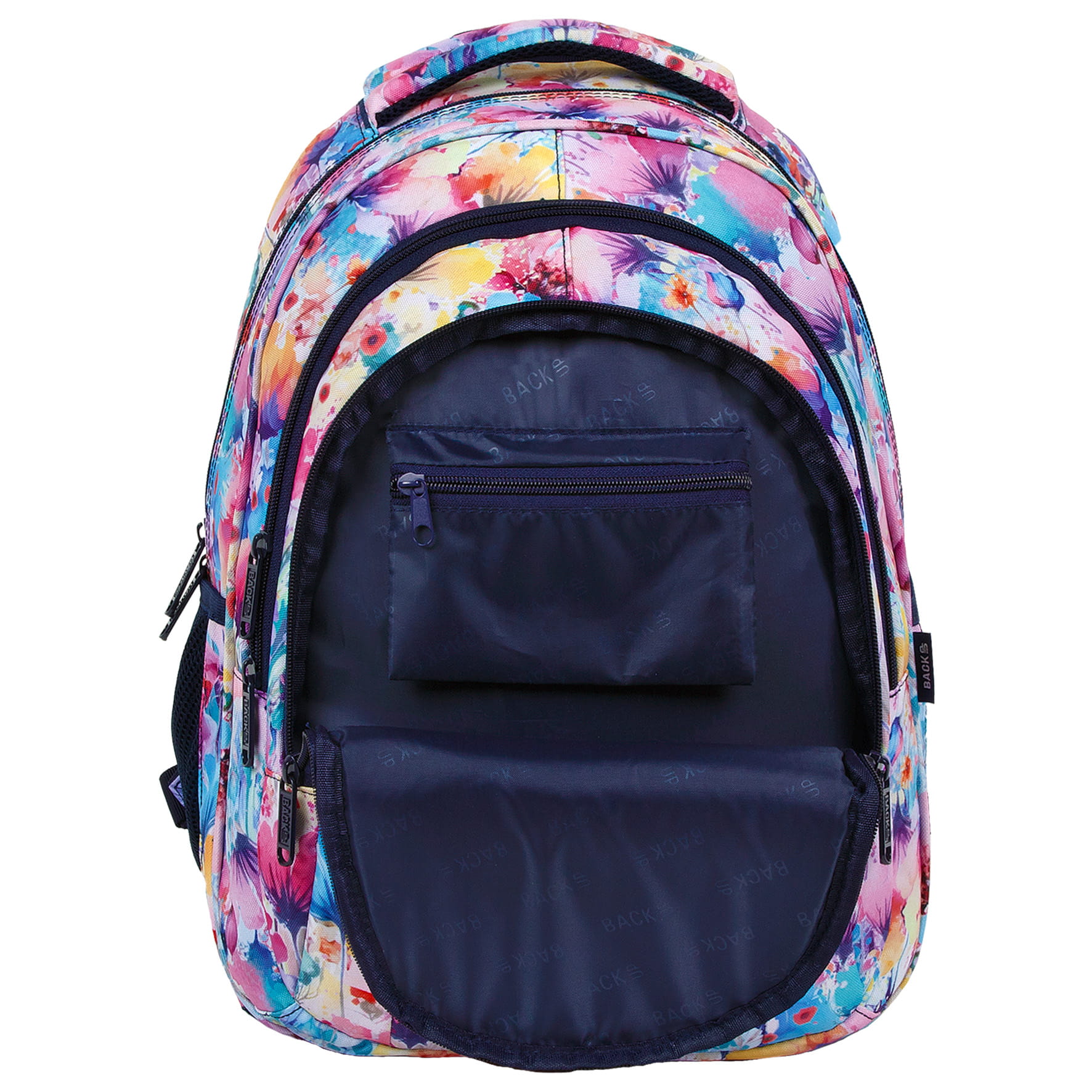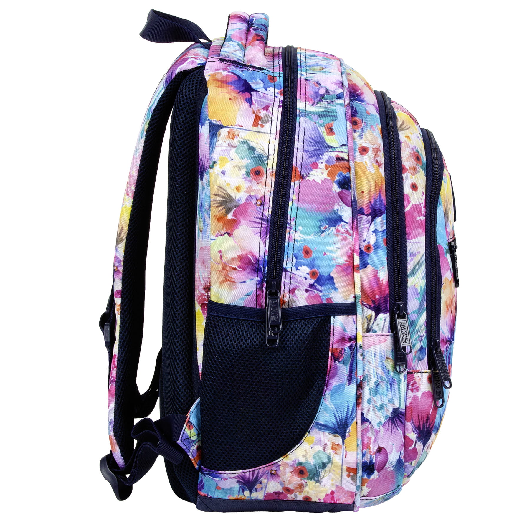 Pełen ekspresji i intensywnych barw plecak szkolny, który przenosi w beztroskie letnie dni. Kwiaty w odcieniach żółci, fioletu, błękitu i różu idealnie łączą się z granatowymi dodatkami, tworząc niezwykle energiczną całość. Dziewczęcy a zarazem pełen dynamiki plecak młodzieżowy wywoła uśmiech na twarzy nawet w najbardziej pochmurne dni.