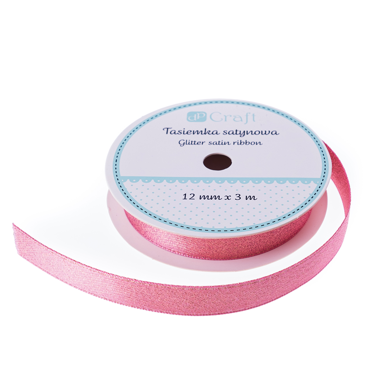 Satynowa tasiemka brokatowa w kolorze jasnego różu, która fantastycznie mieni się w świetle.