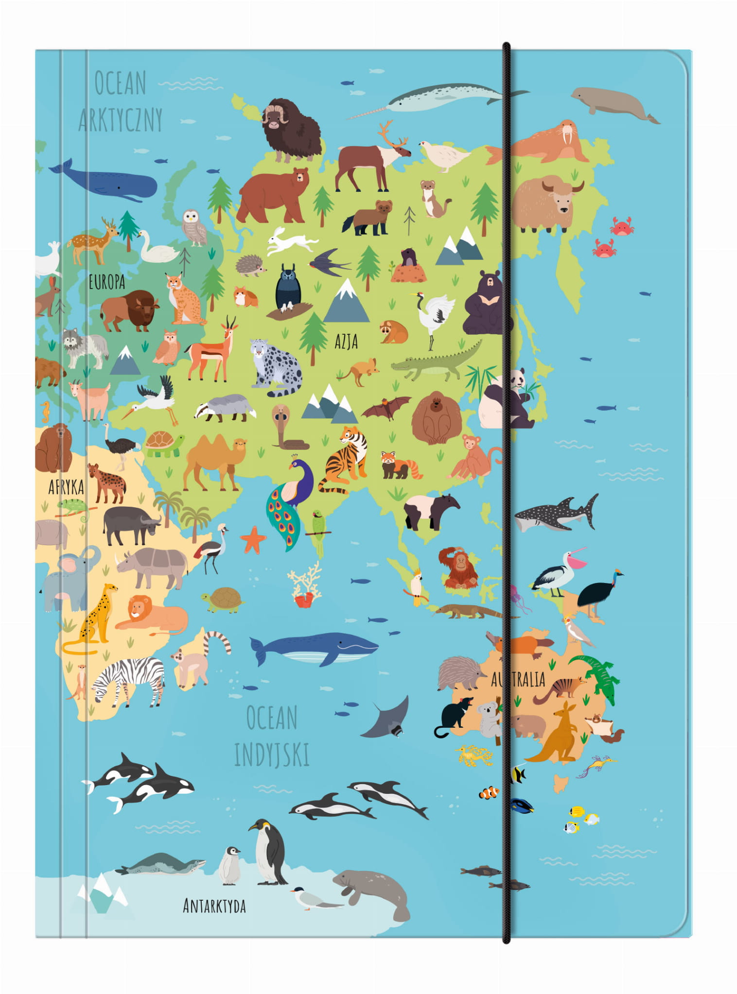 TECZKA Z GUMKĄ A4 MAPA ŚWIATA DERFORM