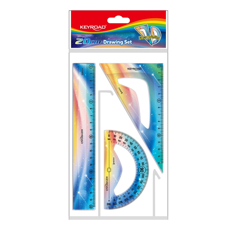 • zestaw: linijka 20cm, kątomierz 10cm, ekierka 14cm
