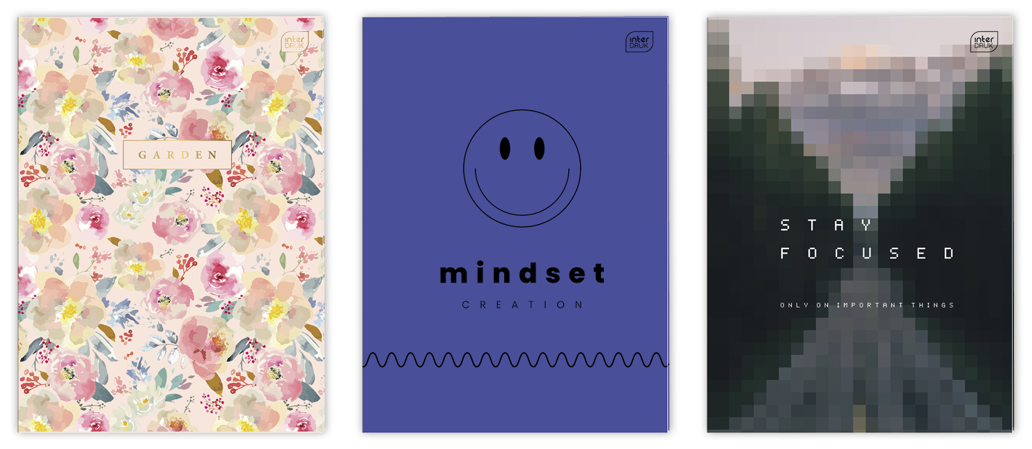 Format: A4. Liczba kartek: 80. Zadruk w kratkę. Ostre rogi. Okładka pokryta lakierem UV.