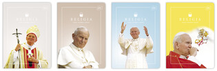 Format: A5. Liczba kartek: 60. Zadruk w kratkę. Okładka pokryta lakierem UV. Zaokrąglone rogi. 2 serie: Jan Paweł II / Franciszek oraz tradycyjne motywy religijne.
